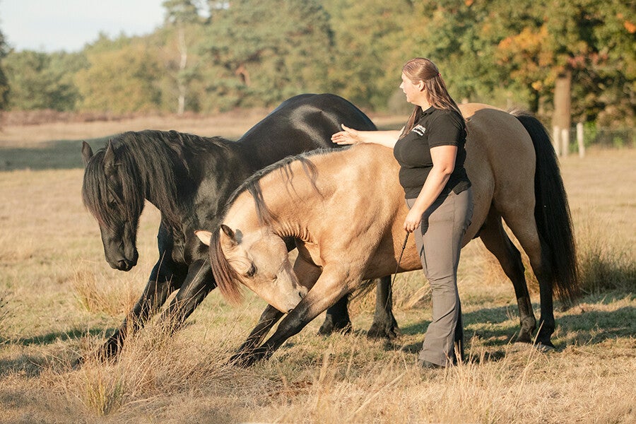 Later kwam Daniëlle ook een keer helemaal naar het hoge noorden om kennis te maken met mijn Fries Hylke en leerde ons een paar vrijheidsdressuur oefeningen. Dat was mijn eerste kennismaking met clickertraining.