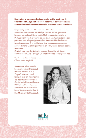 Speelpaard is het tweede boek van systeemtherapeut Hesther Selbeck (1982). Ze geeft internationaal lezingen en trainingen in de door (haar) ontwikkelde Contextuele Paardentherapie (CPT), is heldervoelend en auteur van het succesvolle boek ‘Het Mongoolse paard, het meisje en de therapeut’.