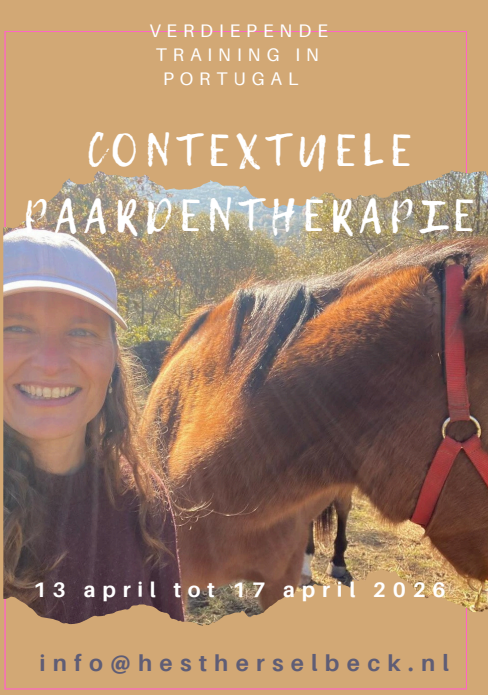 Van 13-17 april 2026 geeft Hesther Selbeck, o.a. bekend van het succesvolle boek “Het Mongoolse paard, Het Meisje en de Therapeut”, weer een verdiepende training in de Contextuele Paardentherapie (CPT) methodiek.