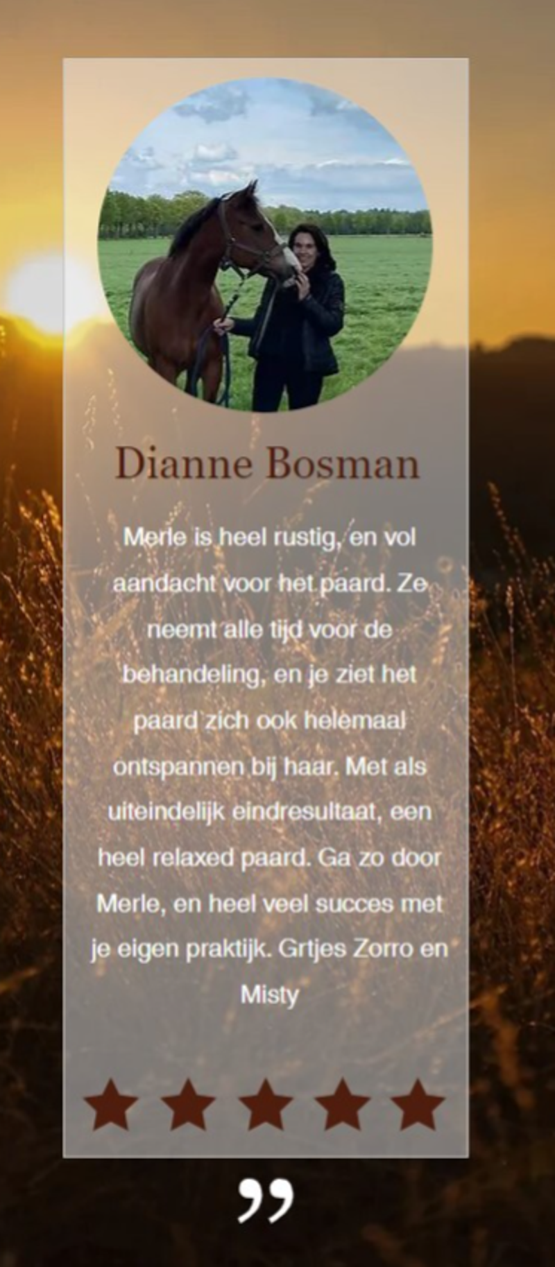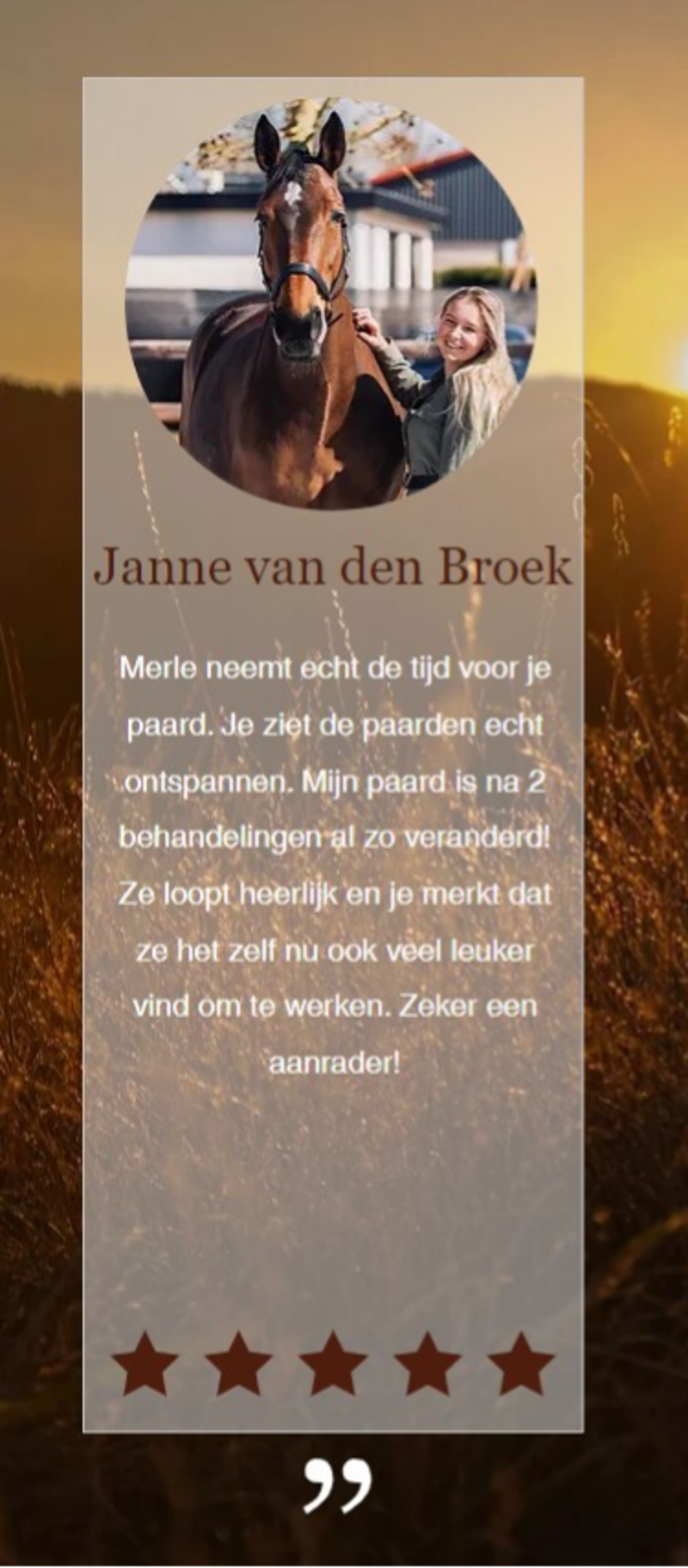 Ik ben super blij en trots dat ik mijn droombaan nu waar kan gaan maken en ik kijk ernaar uit om ook jouw paard(en) te mogen behandelen.